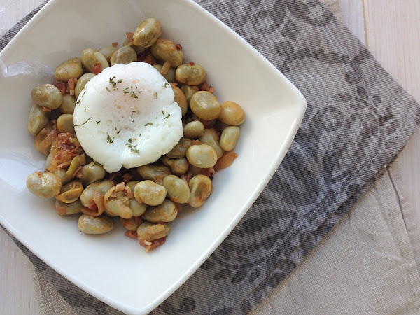 4. Sazonamos con sal y pimienta el salteado de habas y terminamos con el huevo por encima.