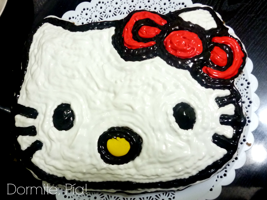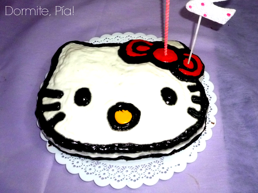 La cosa es que no quería que LA torta la hiciera otra persona, y no me quería comprar un molde de torta con forma de Kitty que iba a usar una sóla vez en la vida asíque lo que se me ocurrió es esto: