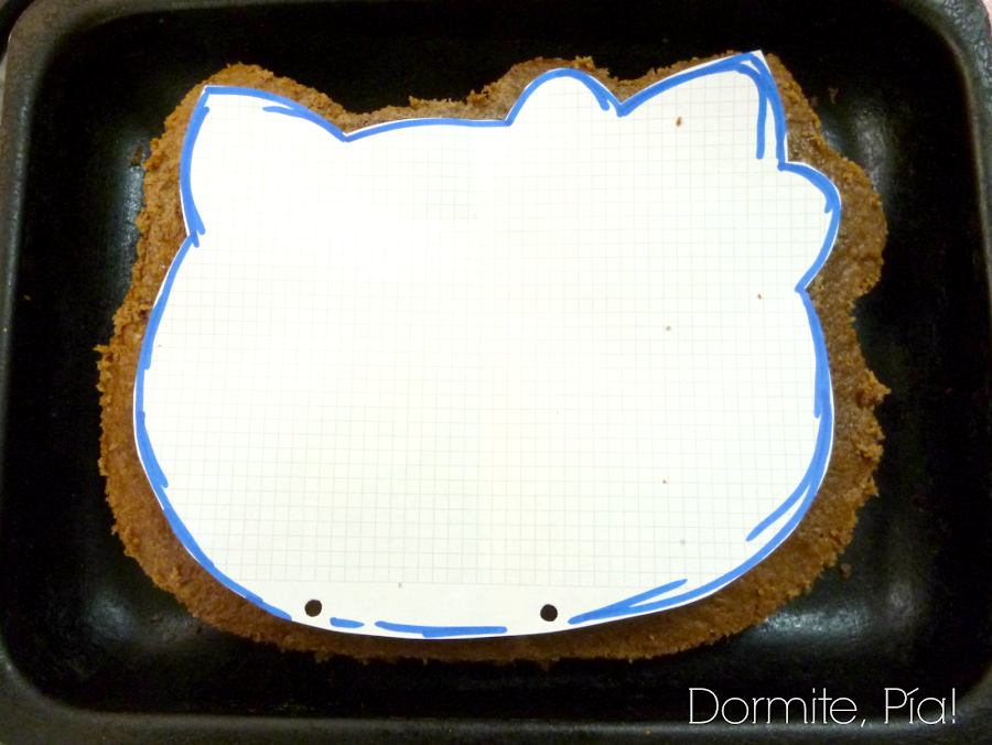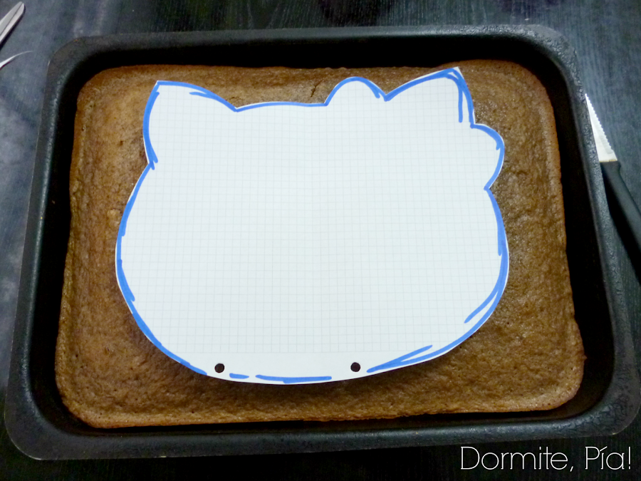 *Calqué de un mantel de cumpleaños la forma de la cabeza de Kitty. No hay nada peor que una cara de Kitty o de Mickey deforme.
