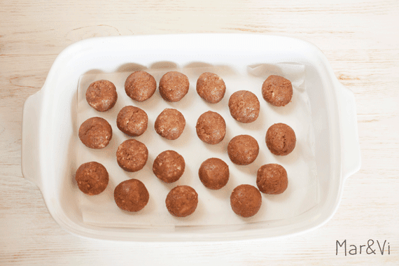 Iremos haciendo bolitas con nuestra masa, y luego las dejaremos reposar durante 30 minutos en la nevera para que solidifiquen un poco.