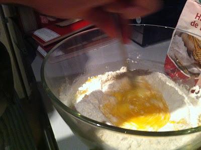 Ir incorporando los huevos poco a poco con la harina con un tenedor