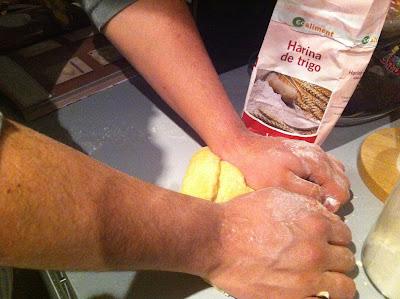 .Amasar con las manos durante 10 min hasta incorporar toda la harina.