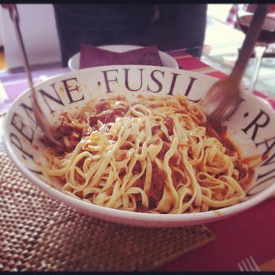 Tagliatelle frescos con salsa ragú alla bolognese.