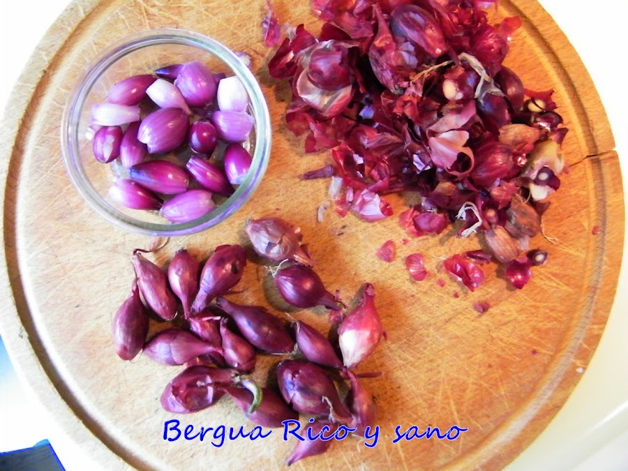 1. Pelamos las chalotas y cortamos los tomates cherry en cuartos. Si las chalotas son grandecitas, las cortamos también en mitades o cuartos.