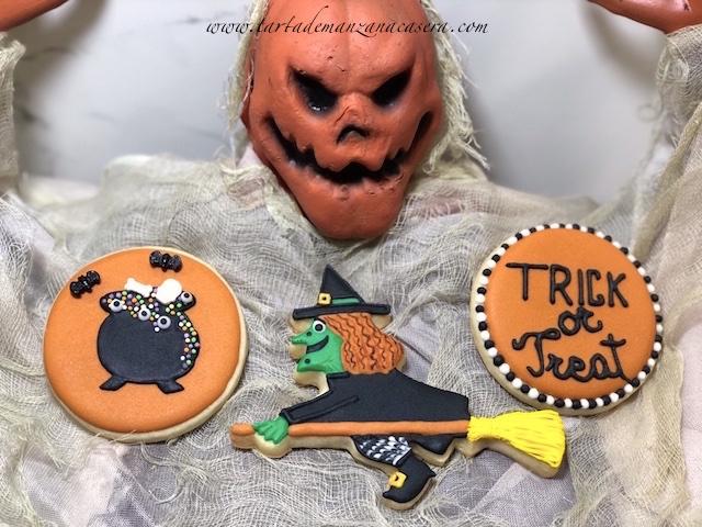 Dos entradas en el mismo día, no os acostumbréis que no es lo normal. De nuevo os muestro los dulces que preparé en Halloween. No os preocupéis no he mirado mal el calendario es que me puse muy pronto en modo navideño y se me olvidó por completo subir el post. Ya os enseñé estas delicias otoñales en Instagram, mi RS favorita últimamente. Ya sabéis que publico sin patrón, sin calendario, sin ataduras ni cadenas, cuando puedo o cuando quiero. Gracias por seguirme igualmente. Pues aquí va un breve resumen de esta fiesta tan celebrada en mi casa y en mi barrio. Cada año somos más, cada año viene más gente al Trick or Treat y cada vez hago corto antes con las galletas a pesar de hornear y decorar 70 galletas este año !!!!! Duran un suspiro. Os enseño todos los modelos de este año. La receta de las galletas básicas de mantequilla aquí y las de glasa real aquí.