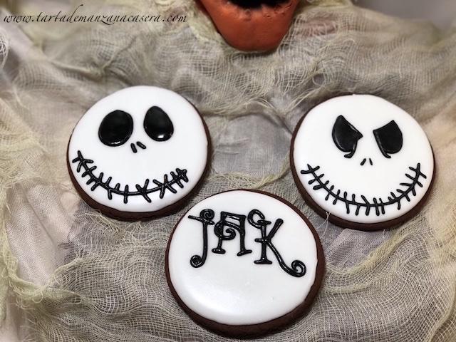 Galletas decoradas de Jack Skellington, de chocolate, el paso a paso aquí.