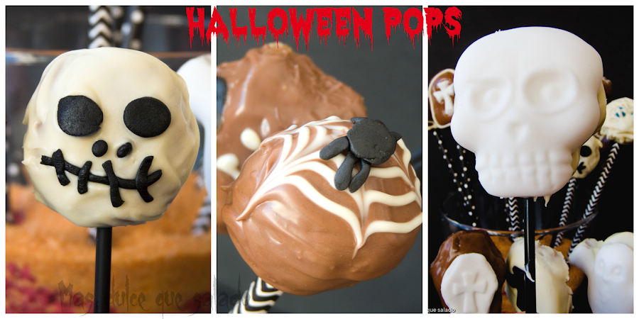 Seguimos con las recetas especiales para Halloween. Unos cake pops bañados en chocolate y decorados con fondant.