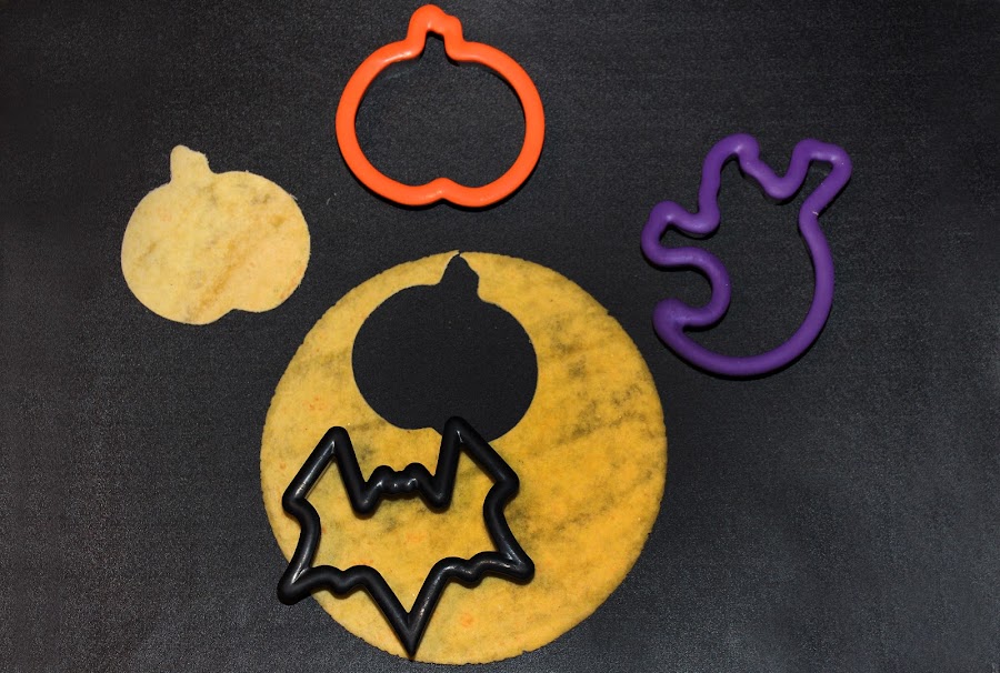 -cortadores de galleta en forma de calabaza, fantasma y murciélago (y si no tienes tendrás que recortar con tijeras)