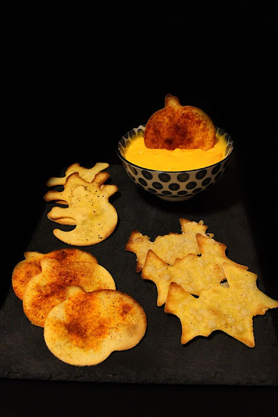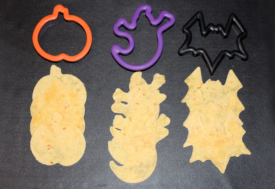 Lo que hoy os propongo es hacer unos chips de tortillas en forma de calabaza, fantasma y murciélago, para acompañar una crema de queso, guacamole o tapenade, (amarillo anaranjado - verde-negro, colores ideales para la noche del 31).