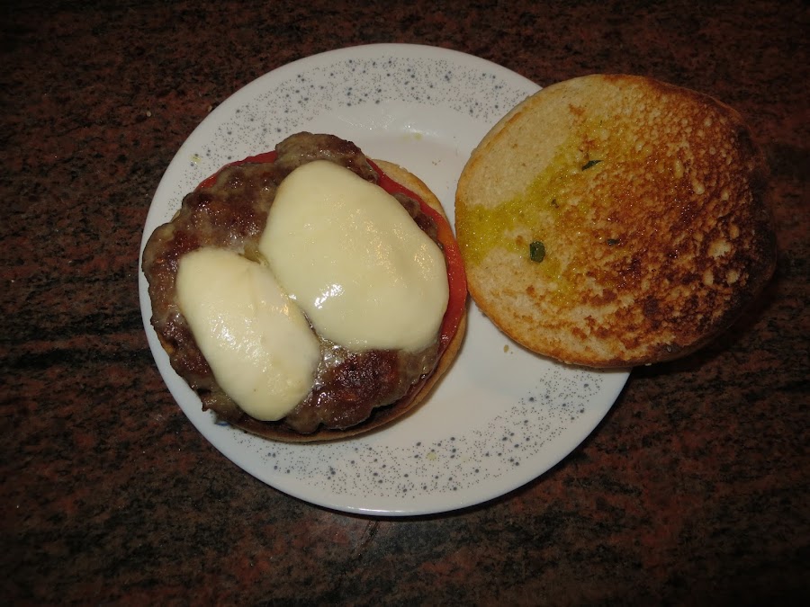 Por último, llega el momento de montarla, colocamos la base del pan, encima el tomate, la carne con la mozzarella y lo tapamos con el pan, si nos gusta mucho el sabor a albahaca podemos añadirle alguna hoja cruda a la hamburguesa. Como siempre podéis añadir la salsas que más os gusten, aunque por si sola está riquísima.