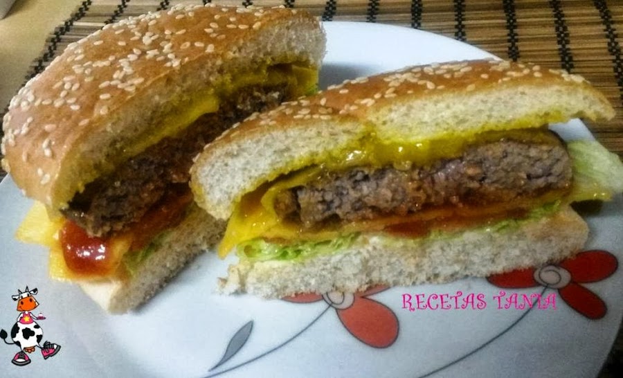 la forma redondita de las hamburguesas. En una sarten con un poquito de aceite ponemos las hamburguesas, vamos dando vuelta y vuelta hasta que esté hecha al gusto (en casa nos gusta bien hecha).Reservamos. Picamos pequeñito los jalapeños (al gusto,mas jalapeños mas picante,menos jalapeños menos picante). En el pan de hamburguesa untamos un poco de mayonesa,colocamos la lechuga picadita,unas rodajas de tomate,dos lonchas de queso cheddar,la carne,encima los trocitos de jalapeño,otra loncha de queso cheddar,un poquito de kepchup y mostaza. Cerramos la hamburguesa y ponemos unos mintuos al horno (solo para que caliente y se derrita un poco el queso). Riquísima!!!! :D