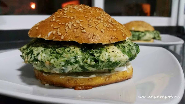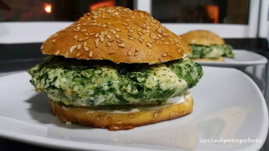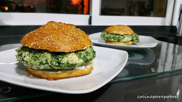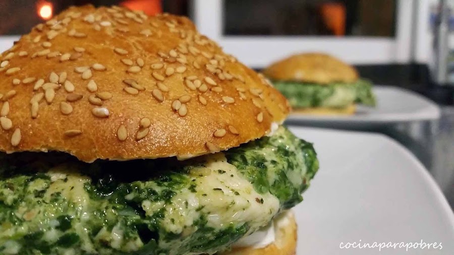 En el super había visto distintas marcas que fabrican hamburguesas de espinaca y pollo, los comentarios que me habían llegado no era para nada positivos, así que, ni las probé, directamente preparé mi versión casera y le di a probar a mi hermano que es más aficionado que yo a las hamburguesas.