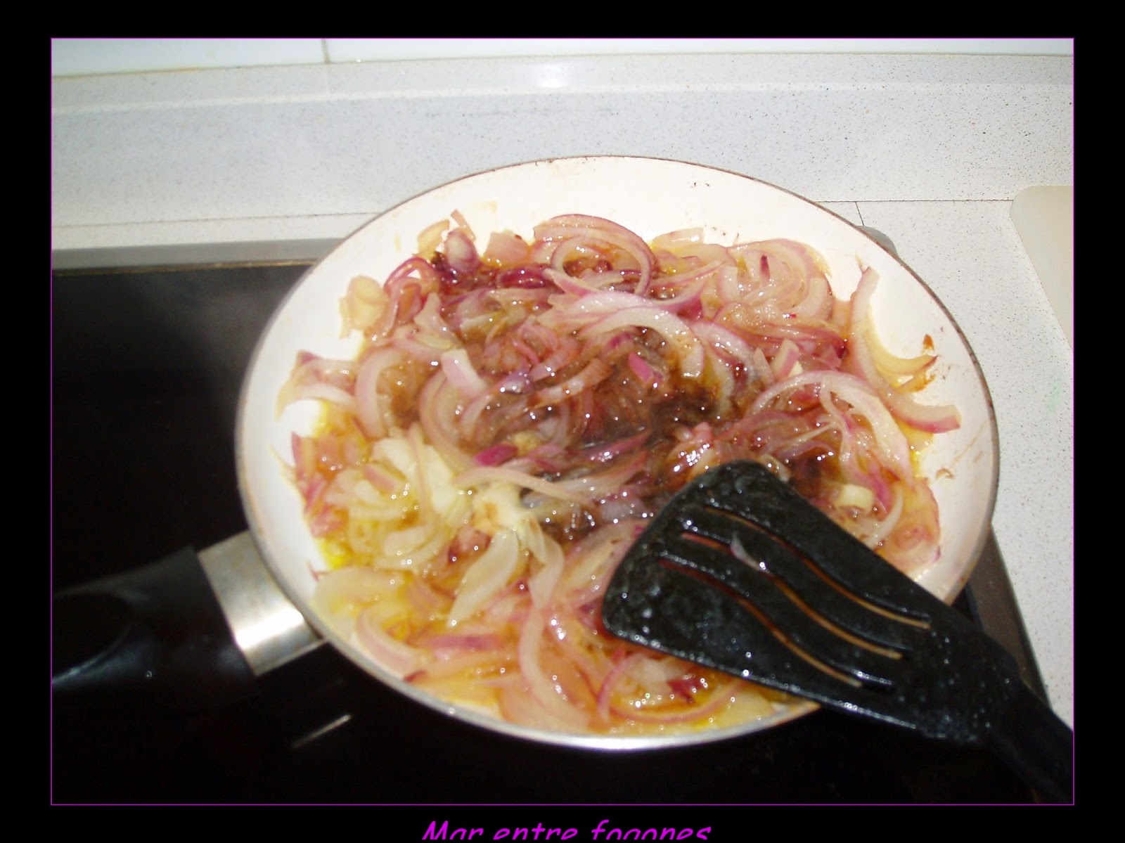 Yo nunca había preparado la cebolla caramelizada pero las chicas del desafio en el grupo del wasap me dijeron como la preparaban ellas... asi que cada una me dió su opinión, que si cebolla aceite y vinagre, que si vinagre no agua, que si caramelo liquido... vamos una variedad increíble.