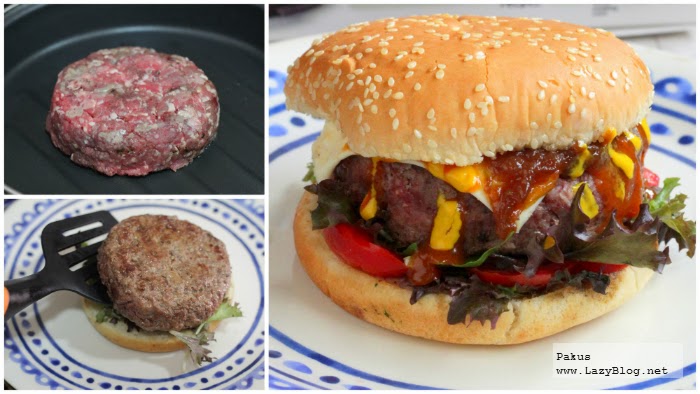 Cocinamos la carne de la hamburguesa sin darle muchas vueltas. Yo prefiero ponerla 3 minutos por cada lado y listo, pero hay quien recomienda darles vuelta cada 30 segundos para que se vaya haciendo por igual por ambas caras de forma simultánea. Lo dejo a vuestro criterio.Montaje y Degustación