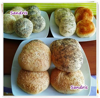 Y se me olvidaba... estos panecillos de hamburguesa ya los hice con anterioridad, por eso os puse el enlace a la receta donde están puestos los ingredientes. Y tenía pendiente hacerles una buena tanda un día a mis padres y a mi sobrino que siempre me pide que le haga cosas. Y aprovechando que hoy me voy a mi pueblo, digo, pues hago una buena tanda y les llevo todos, así ya tienen para una buena temporada. La otra vez los hice con sésamos, semillas de amapola, orégano y pimentón rojo. Esta vez hice los mismos pero en vez de pimentón rojo, le puse un poco de guindilla molida (ya que a unos cuantos de ellos les gusta el picante). Así que nada, aquí os pongo la tanda que hice, a ver si os parece que hay bastantes o debería haberles hecho unos cuantos más jejejejeje