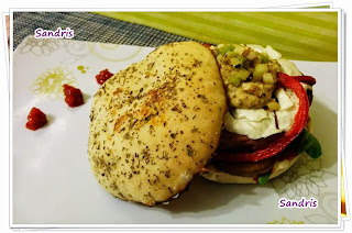Panecillos de hamburguesa, solo que el que se comió él esta vez, le puse por encima un poco de orégano solo, sin sésamo, ni semillas de amapola, solo un poco de orégano por encima y listo :-)
