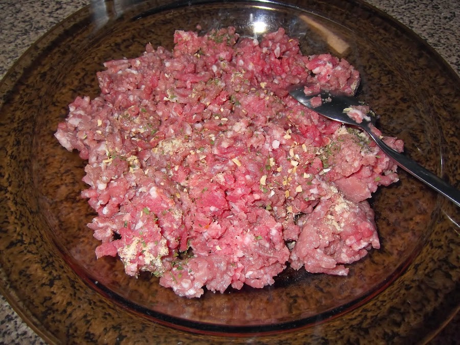 Lo primero que vamos a realizar es la carne de la hamburguesa, se añade a la carne picada, el perejil, la sal, el ajo y la cebolla en polvo.