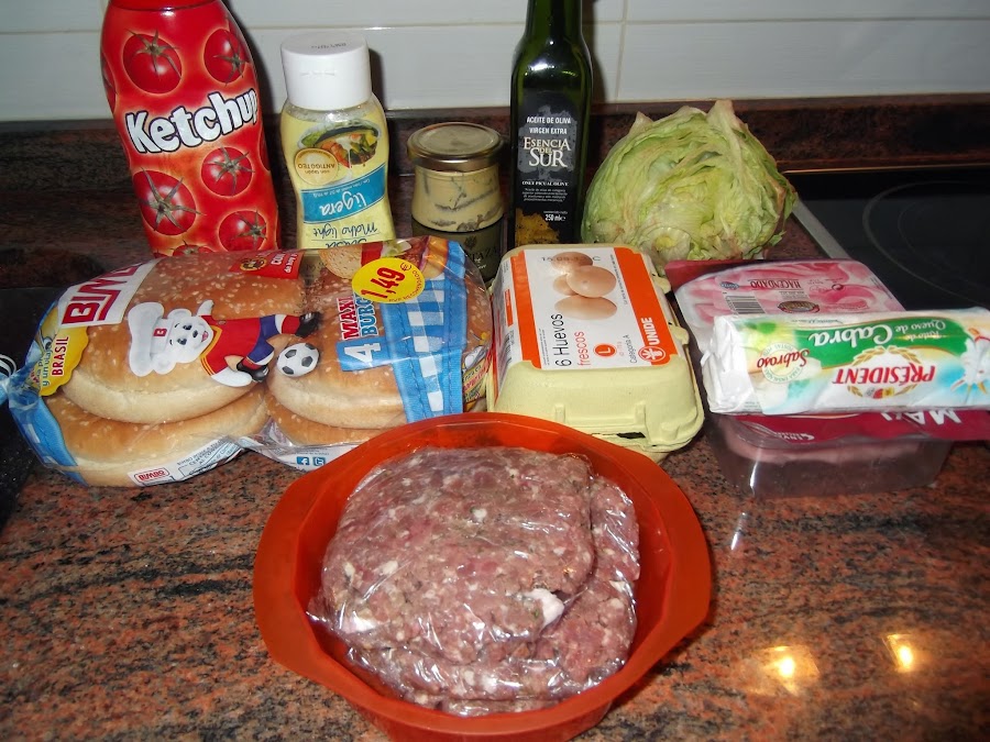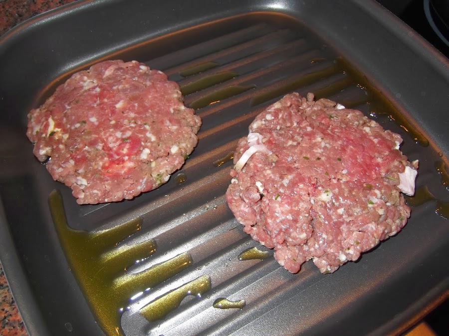 El resto de los pasos son muy sencillos, echáis un poco de aceite en la sartén y colocáis la carne encima y le vais dando vueltas para que se haga. Cortáis la lechuga, el tomate, y las rodajas de queso de cabra.
