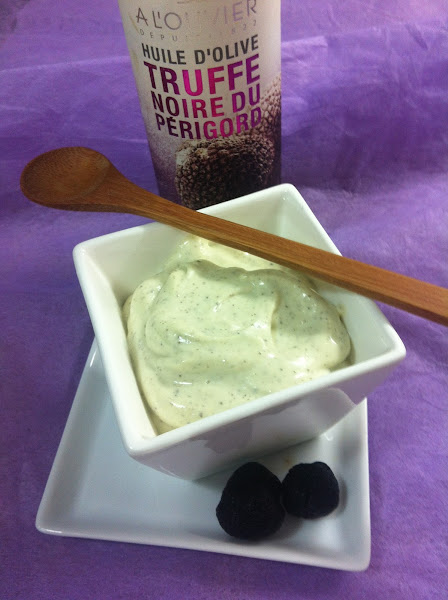 Se prepara la mayonesa poniendo en el vaso de la batidora un huevo a temperatura ambiente lavado y seca su cáscara (para evitar Salmonella). Se agrega el zumo de limón y la sal y se va añadiendo el aceite a hilo hasta que emulsione la salsa. Se incorpora la trufa troceada con un poco del jugo en el que viene envasada y se añade un poco más de aceite, en este caso de trufa.
