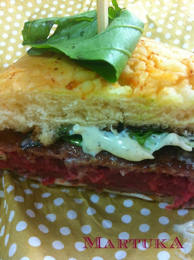 Se le da la vuelta a la hamburguesa, dejándola un tiempo más hasta dejarla al gusto (mi gusto, como podéis comprobar es cruda por dentro y caramelizada por fuera).