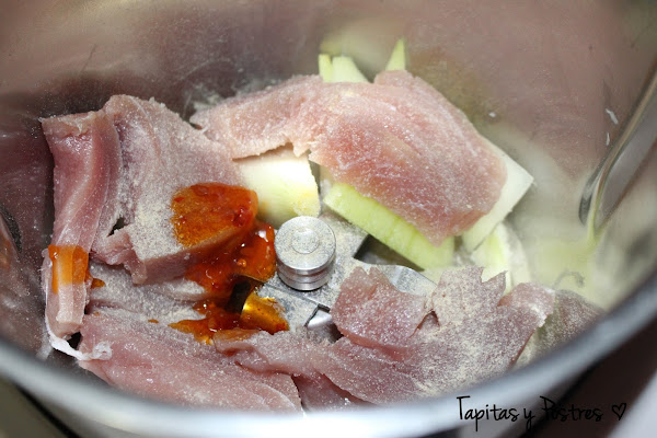 Ponemos todos los ingredientes en el vaso de la thermomix y picamos 20 segundos a velocidad 7.
