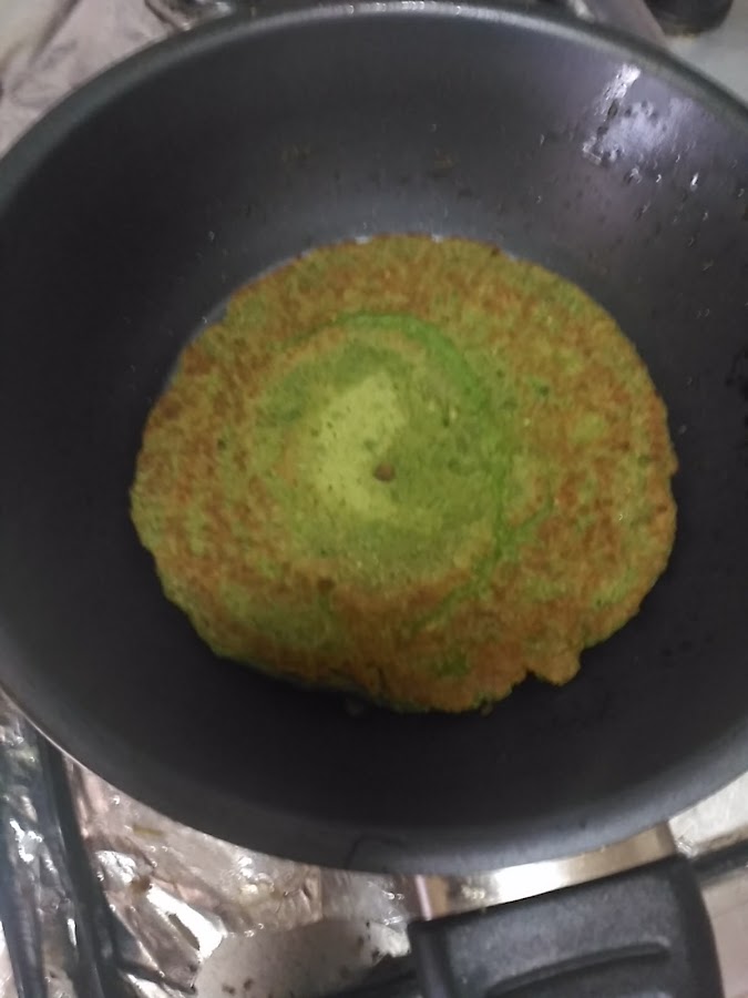 2. Engrasamos una salten con un poco de aceite y echamos la masa yo utilice un cazo como medida.