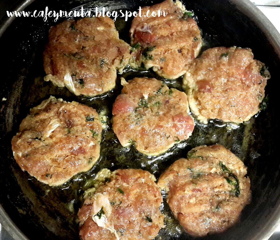 5. En una sartén caliente con aceite, ponemos las hamburguesas y las hacemos a la plancha, hasta que la capa de fuera quede crujiente.