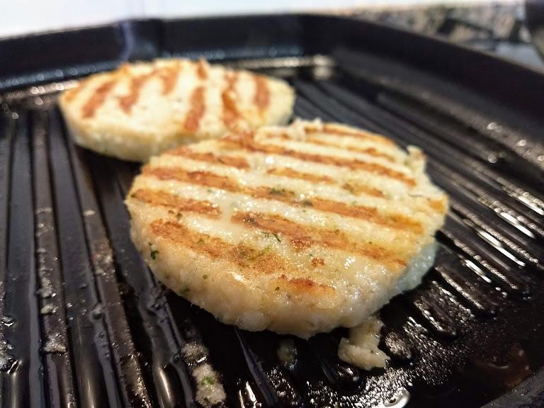 Podéis freírlas pasándolas por harina. Quedan muy bien. En esta ocasión las he preparado a la plancha (¡más saludables!). Para ello pintad la superficie (ambas caras) de la hamburguesa con un poco de aceite. Calentad muy bien la plancha y cuando las pongáis bajáis un poco el fuego. Dos o tres minutos por cada lado será suficiente. Mucho cuidado que no se os peque. Podéis tirar unas gotas de aceite también en la plancha pero no os paséis porque de lo contrarío el aceite se quema y humea.