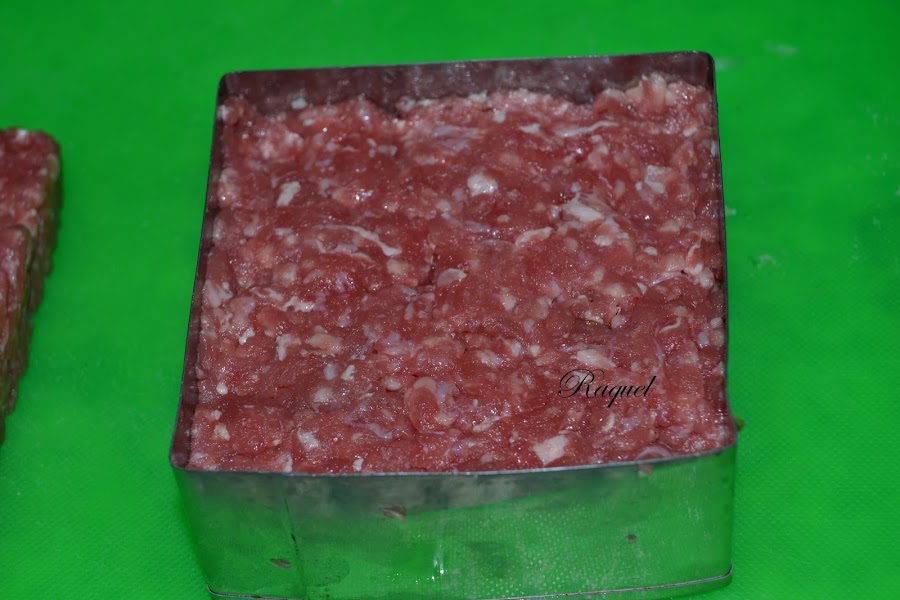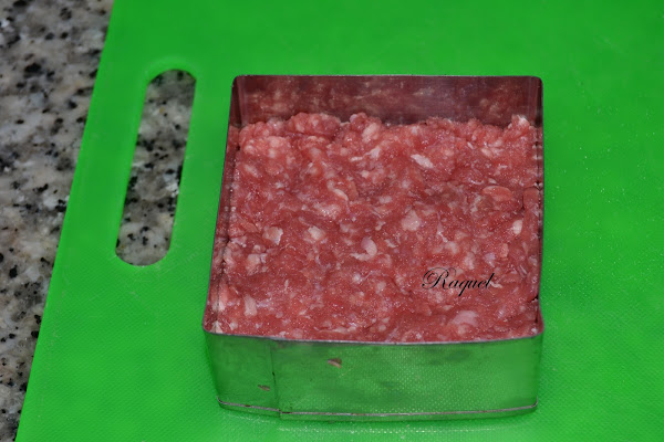 Levantamos el molde con cuidado y seguimos el mismo procedimiento para hacer el resto de hamburguesas.