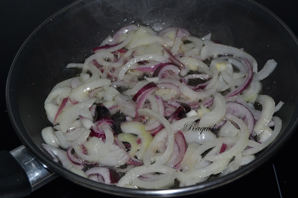 Ponemos una sartén con aceite y freímos la cebolla con un poco de sal, una vez hecha la reservamos.