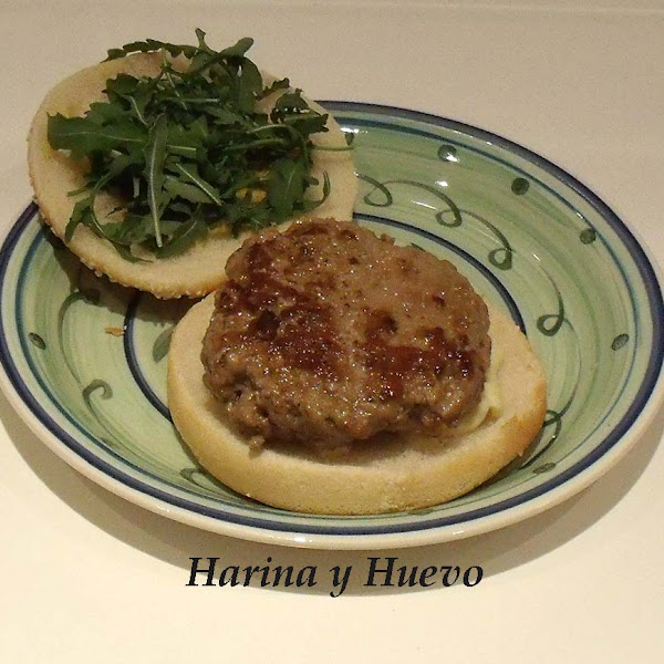Basta con añadirlo todo, amasar bien para que las especias se reparta, dividir en dos y darle forma a la carne de hamburguesa. La hacemos a la plancha como más nos guste: poco hecha, en su punto o bien hecha. Para acompañarla os recomiendo hacerlo solo con un poco de mostaza y queso. Si queréis añadirle verduritas yo le pondría rúcula. Todo lo demás os enmascarará el sabor.