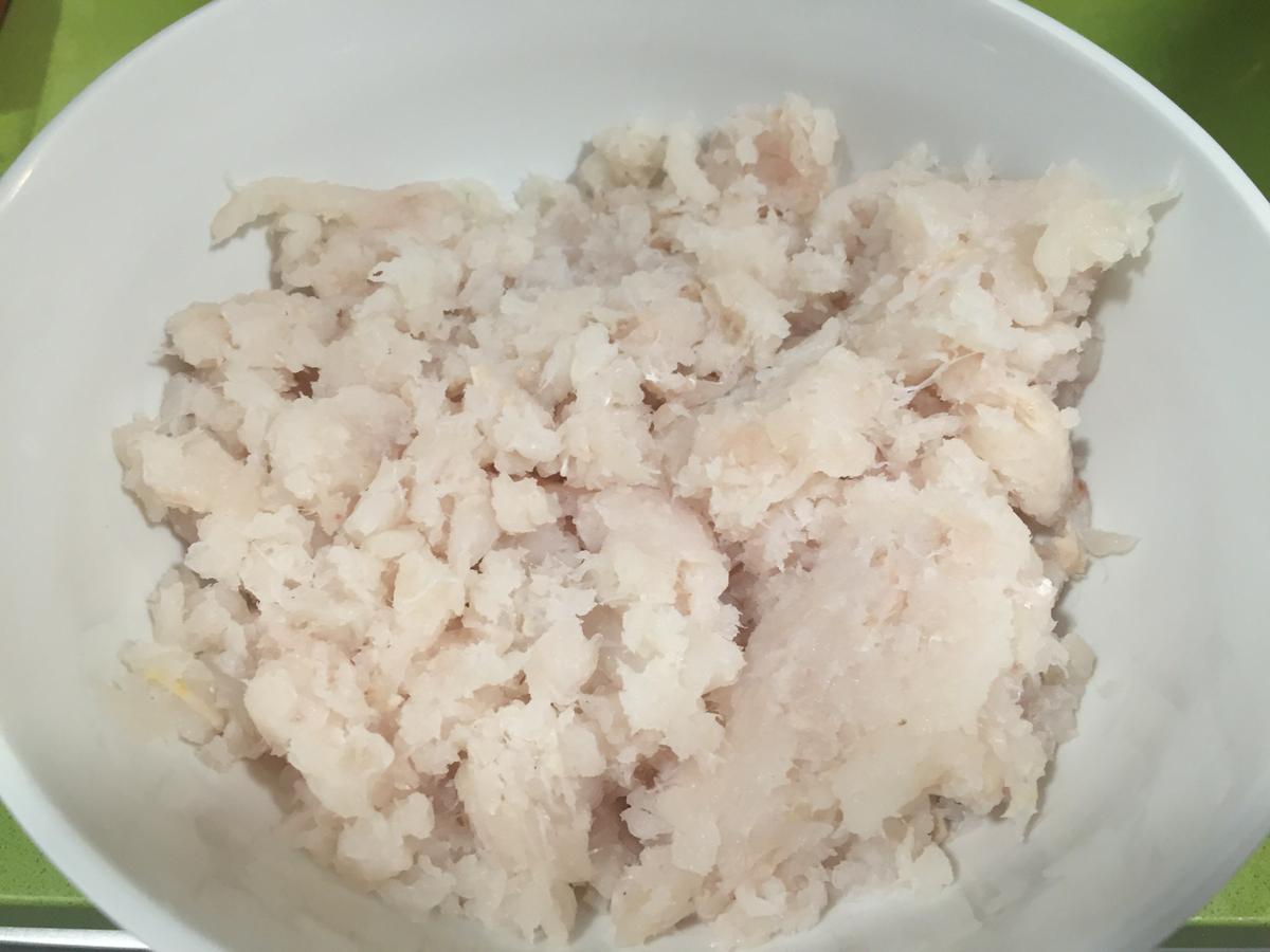 Picamos la merluza en la picadora o en la thermomix. Reservamos.