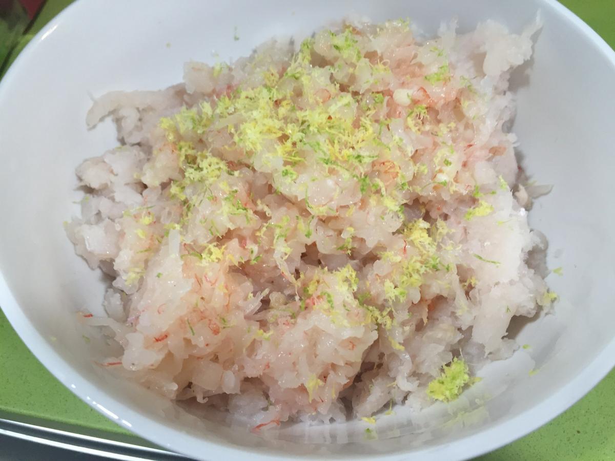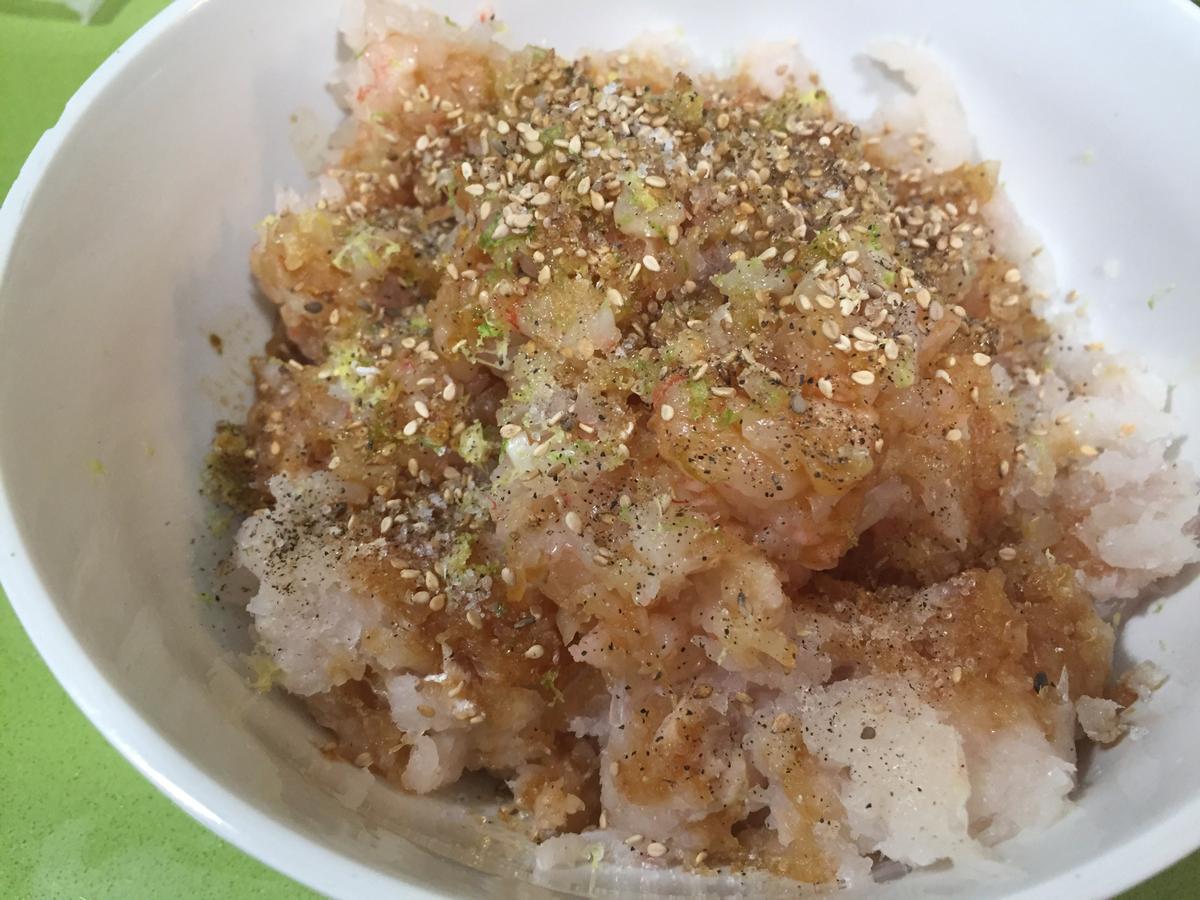 Salpimentamos toda la masa, añadimos la soja, el aceite de sésamo, la mostaza, ralladura de lima, las semillas de sésamo todo al gusto. No doy medidas por que es totalmente a vuestra elección. Si lo queréis picante añadirle un poco de guindilla picada.