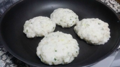 2.- Con las manos engrasadas, formar pequeñas hamburguesas. Reservar.