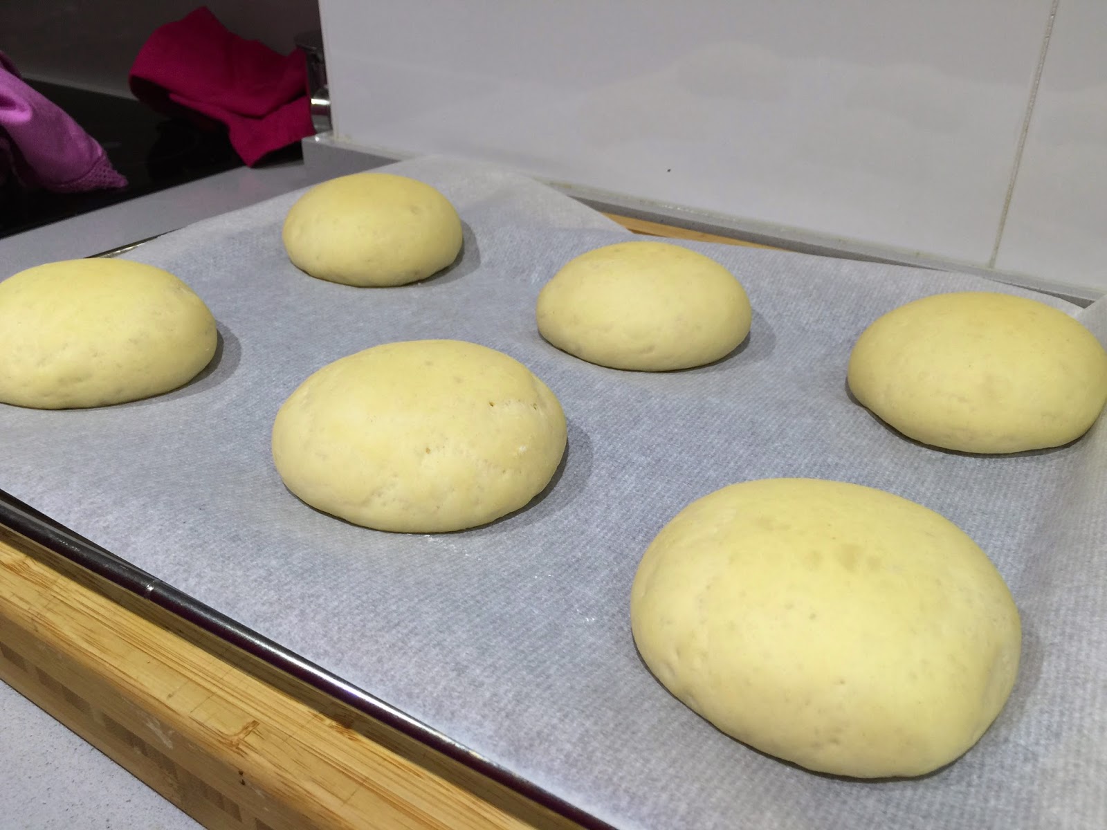 1. Lo primero que tenemos que tener listo son los panecillos de hamburguesa. Podemos prepararlos ese mismo día, o bien, haberlos hecho con antelación, y descongelarlos. Sea como sea, siempre caseros. Que nada tiene que ver el pan de hamburguesa industrial.