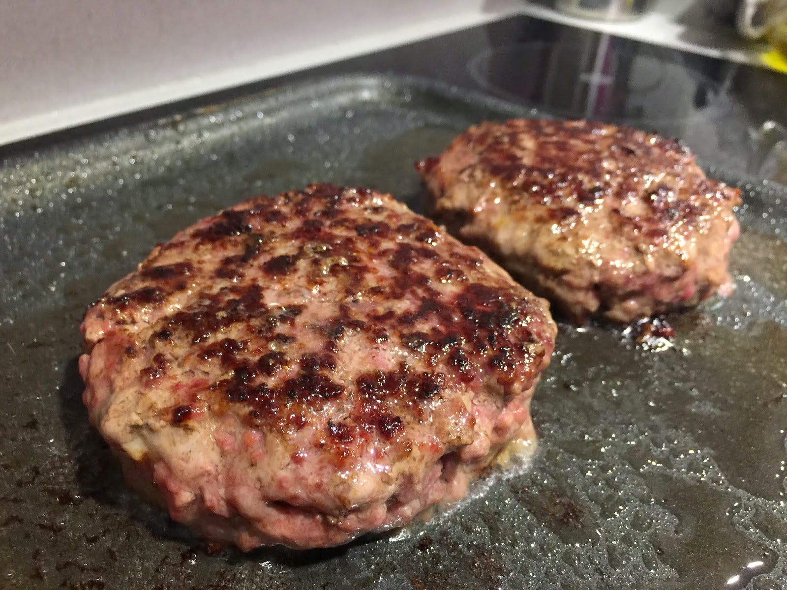2. Ponemos en una sartén a fuego medio las hamburguesas. Las hacemos sin gota de aceite, está carne es muy sabrosa, pero contiene bastante grasa, así que no hace falta añadir mas.