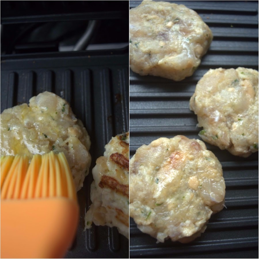 Formamos bolas con la masa y aplanamos. Embadurnamos con un poco de aceite y las hacemos a la plancha.