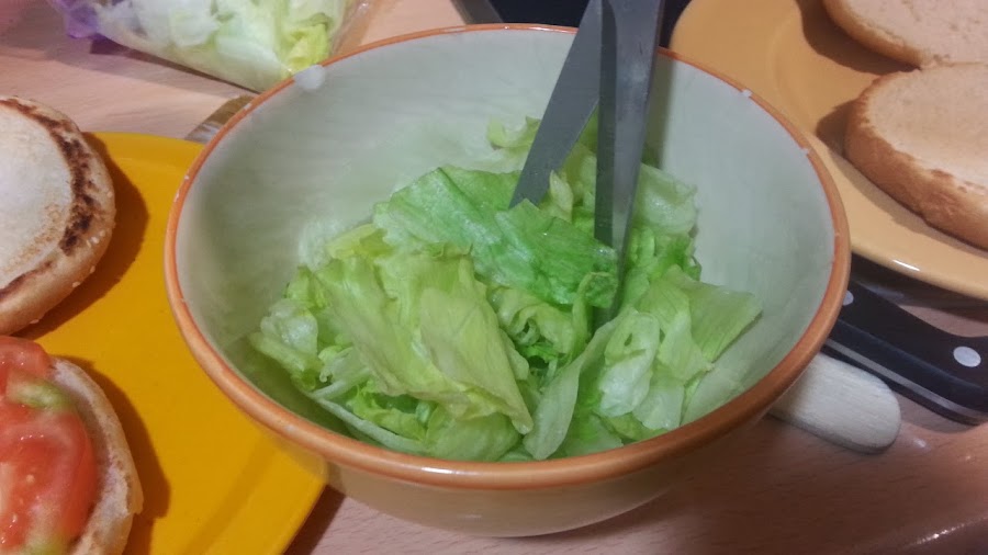 en un bol echais la lehuga y con la ayuda de unas tijeras