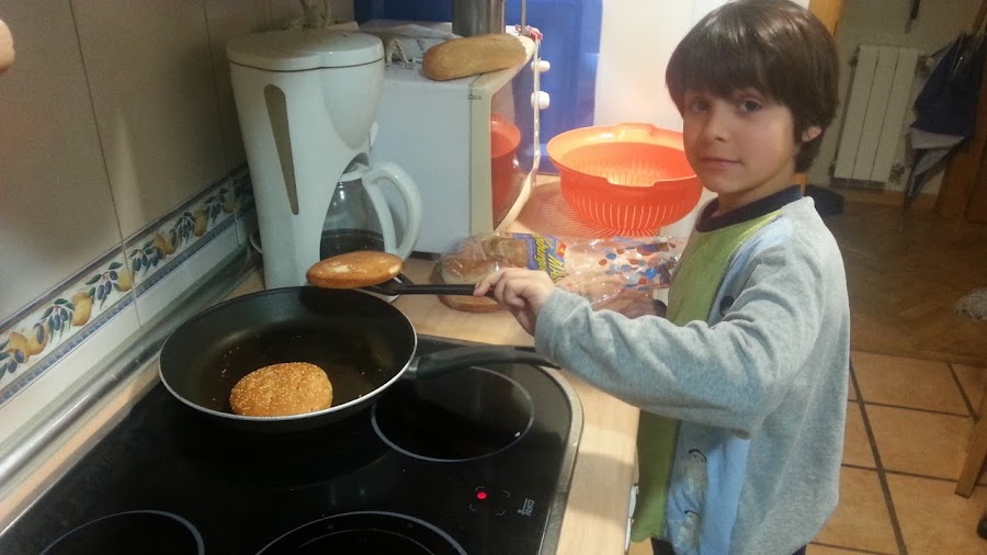 Mientras que se hacen las hamburguesas tostamos el pan, yo ya lo veis, eso no lo hice, me lo hizo el chef Alvarete