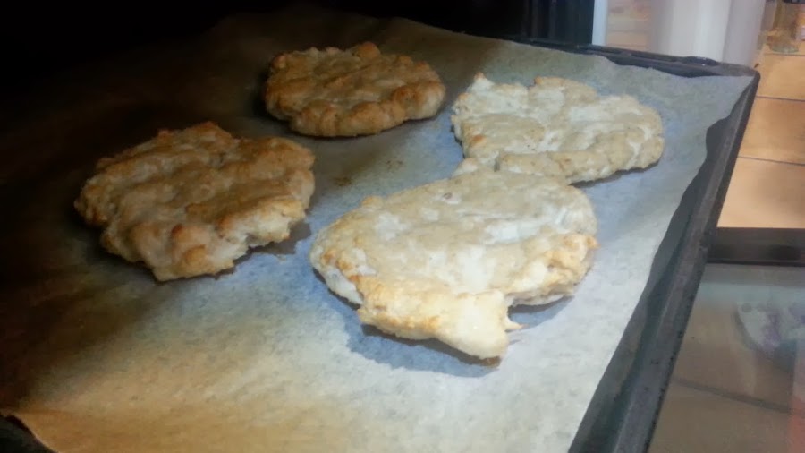 las aplastais las bolas y las disponeis sobre papel vegetal en una placa de horno y las intoducis en el mismo a 180º