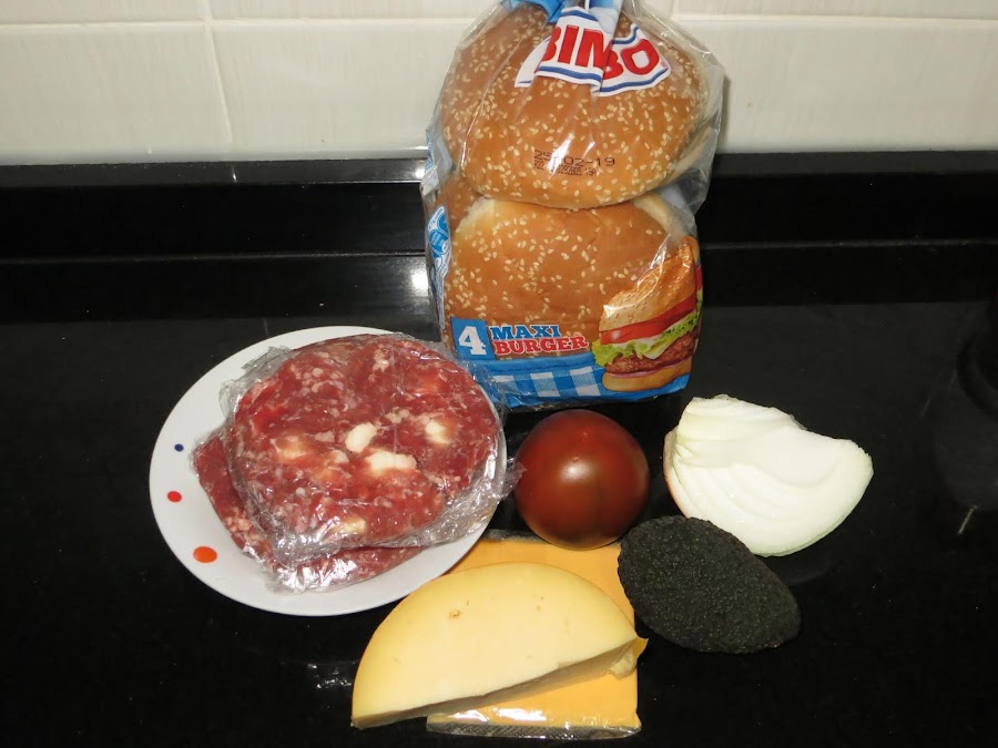 Luego echamos aceite en una sartén o plancha y colocamos las hamburguesas para cocinarlas por cada lado. Mientras tanto tostamos el pan y cortamos en rodajas la cebolla, el tomate y en láminas el aguacate. Colocamos todo encima del pan junto con la loncha de queso cheddar.