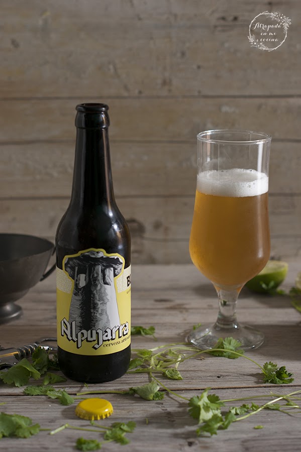 Hemos acompañado las hamburguesas con una cerveza artesana granadina, la cerveza Alpujarra, en concreto con la variedad Blonde con un toque de cítrico. Esta cerveza, de fermentación tipo ALE, se caracteriza por su cuerpo medio – denso de color dorado, elaborada con 3 Maltas y Lúpulos europeos con toques citricos que ofrecen un amargor e intensidad moderados muy agradables al paladar. Una cerveza elaborada en las faldas de Sierra Nevada, manteniendo la pureza de las reconocidas y salubres aguas que riegan la fértil localidad alpujarreña de Órgiva, enclave privilegiado de la provincia de Granada.