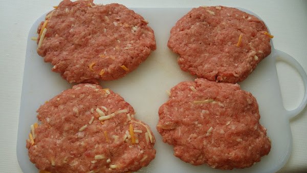 Amasamos la mezcla con las manos y hacemos 4 hamburguesas de tamaños parecidos.