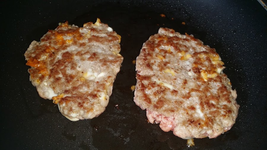 A continuación, pasamos las hamburguesas por una sartén con un poco de aceite junto con el bacon.