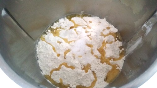 Añadir la Harina, aceite y sal 4 min., Espiga.