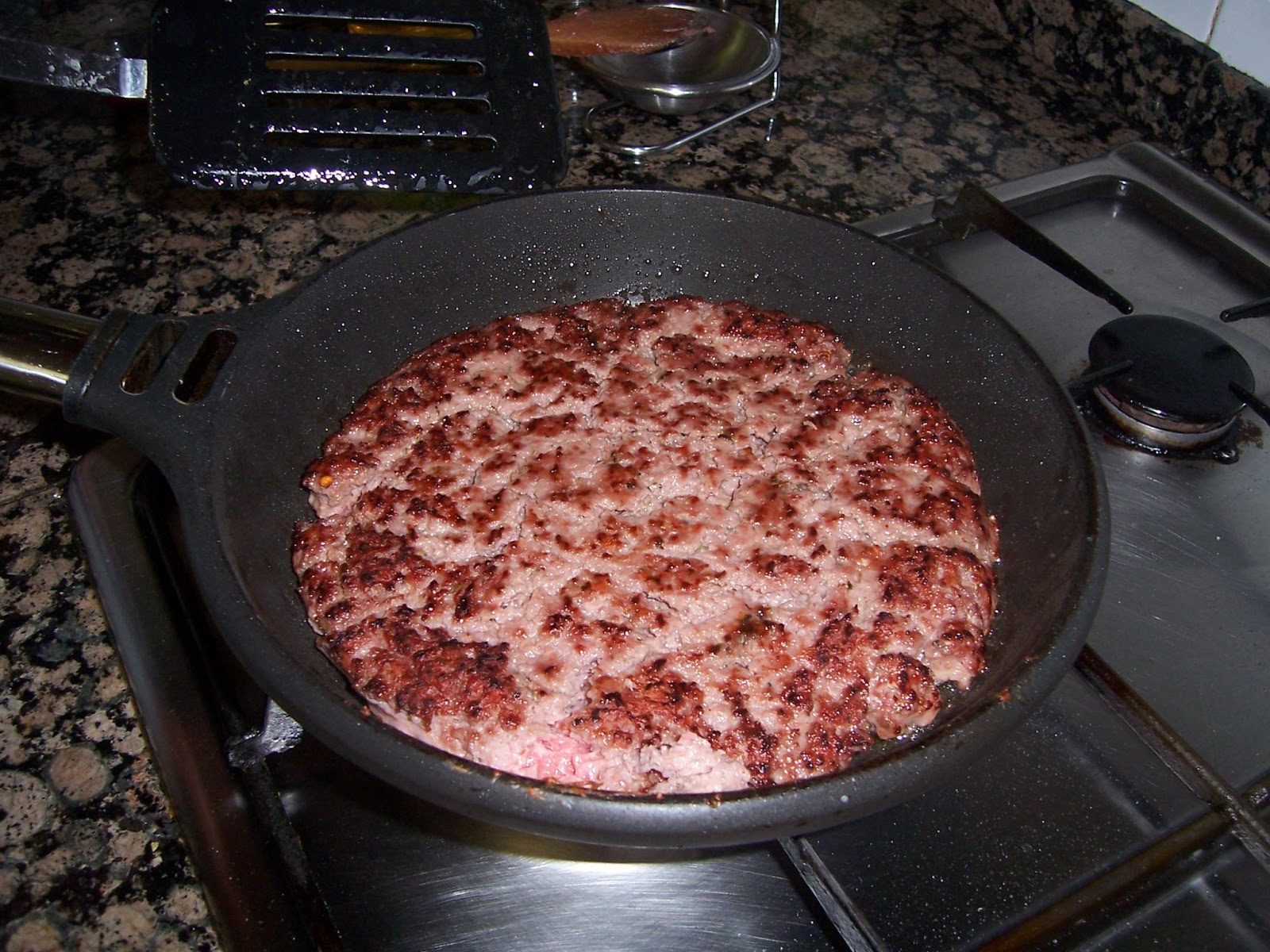 Ponemos la carne en una sartén antiadherente sin nada de aceite (la carne ya soltará su grasa) y la extendemos bien según el tamaño del bollo, cuando esté por un lado le damos la vuelta y la hacemos bien por los dos lados, en el último momento cuando le falten un par de minutos añadimos las lonchas de queso y dejamos un par de minutos más a fuego lento para que el queso se derrita.