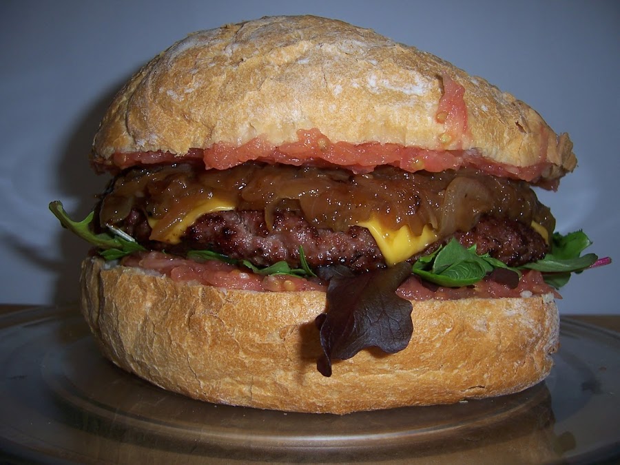 Montamos la hamburguesa, ponemos la lechuga, la hamburguesa con el queso y encima la cebolla caramelizada tapamos y listo para servir. Buen provecho.