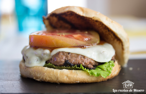Ahora que están tan en boga las hamburguesas gourmet, esta es una buena oportunidad de hacerte una señora hamburguesa en casa. Os sorprenderá la mezcla de sabores que se obtiene con el sazonado de la carne. Los extras, como siempre, son al gusto. Aunque veáis bastante recargada esta hamburguesa en comparación con otras que hemos puesto en el blog (como esta de ternera con foie y queso o esta de kobe y questo curado) , nada más lejos de la realidad, veréis que no sobra ninguno de los que hemos puesto y obtendréis un bocado delicioso.
