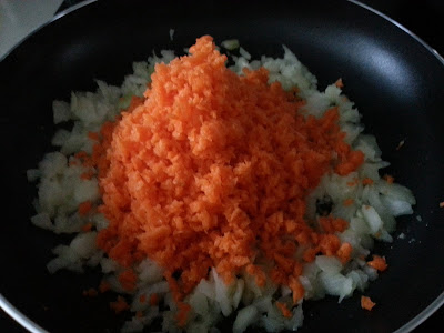 2. - Mientras rallamos la zanahoria y cuando la cebolla esté un poco transparente se la añadimos.