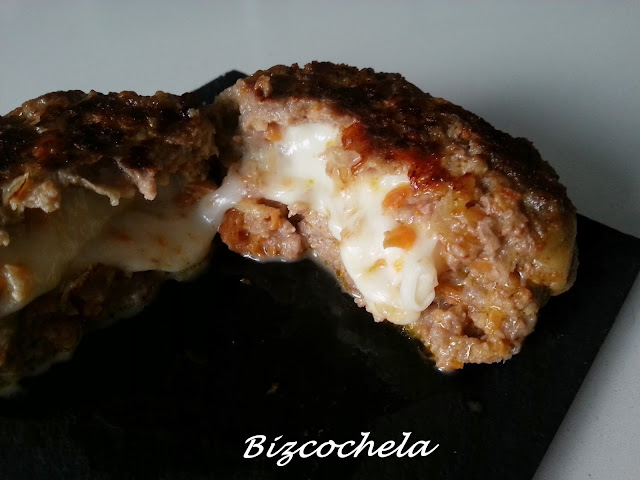 Y a la hora de hacerlas, hay que tener paciencia, ya que quedará una hamburguesa más gruesa de lo normal, así que tendréis que poner el fuego medio y dejarla 5 o 6 , incluso 7 minutos por cada lado, para que se hagan bien y el queso se funda.